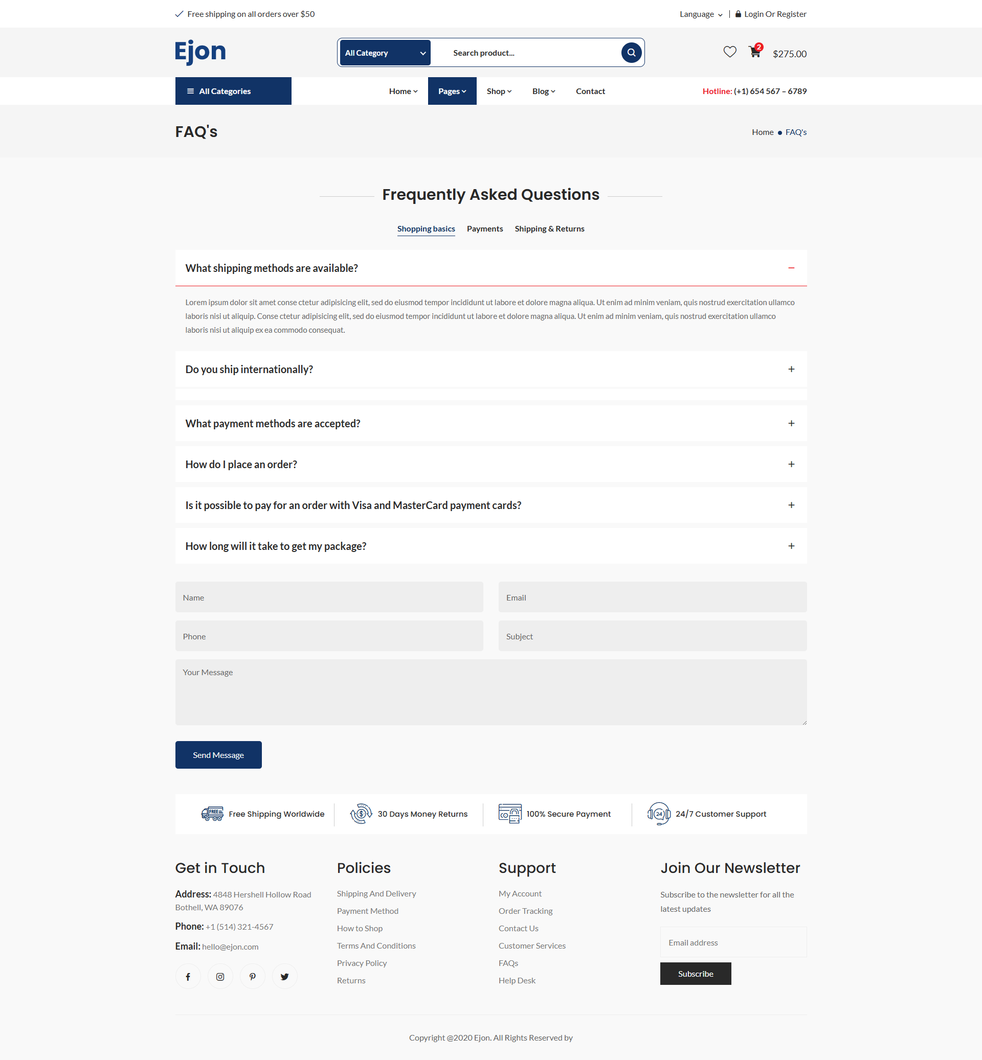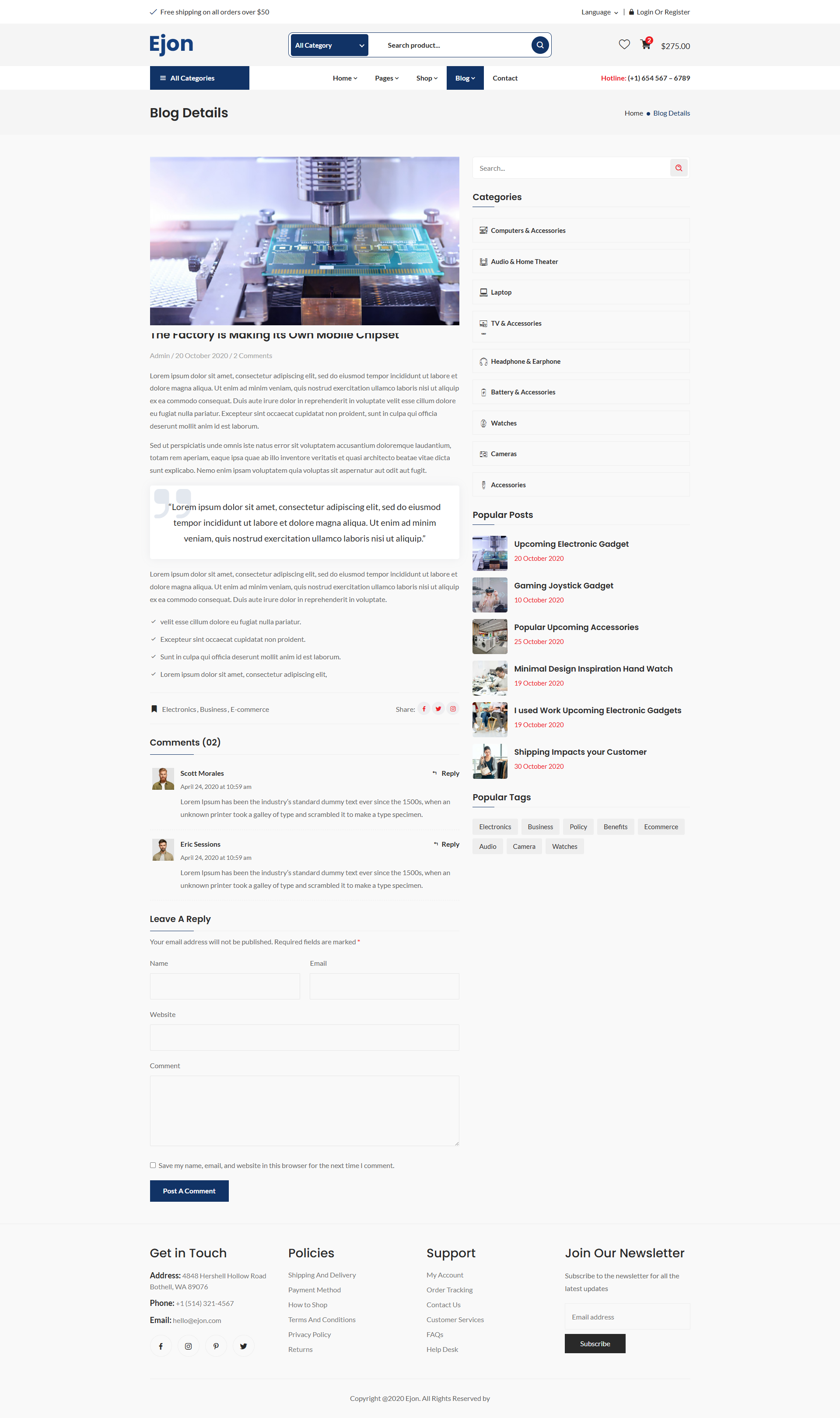 Ejon - Electronics eCommerce HTML Template