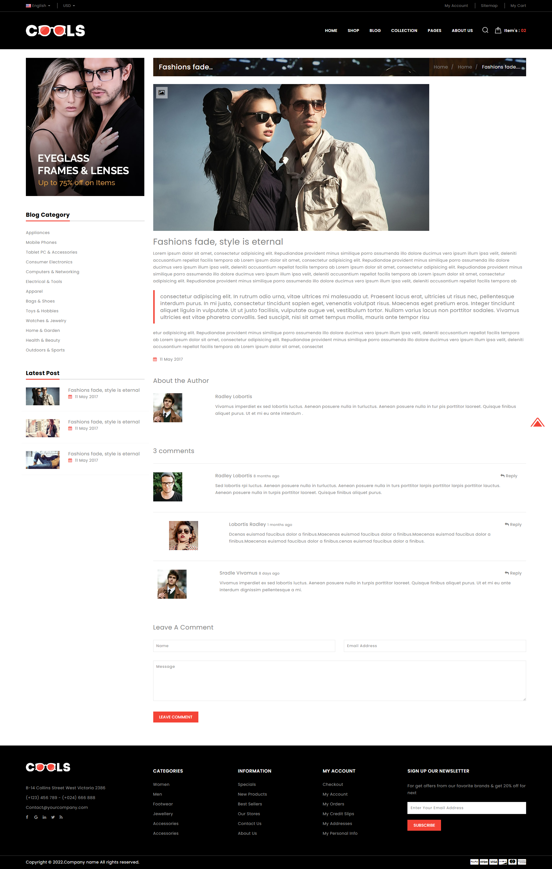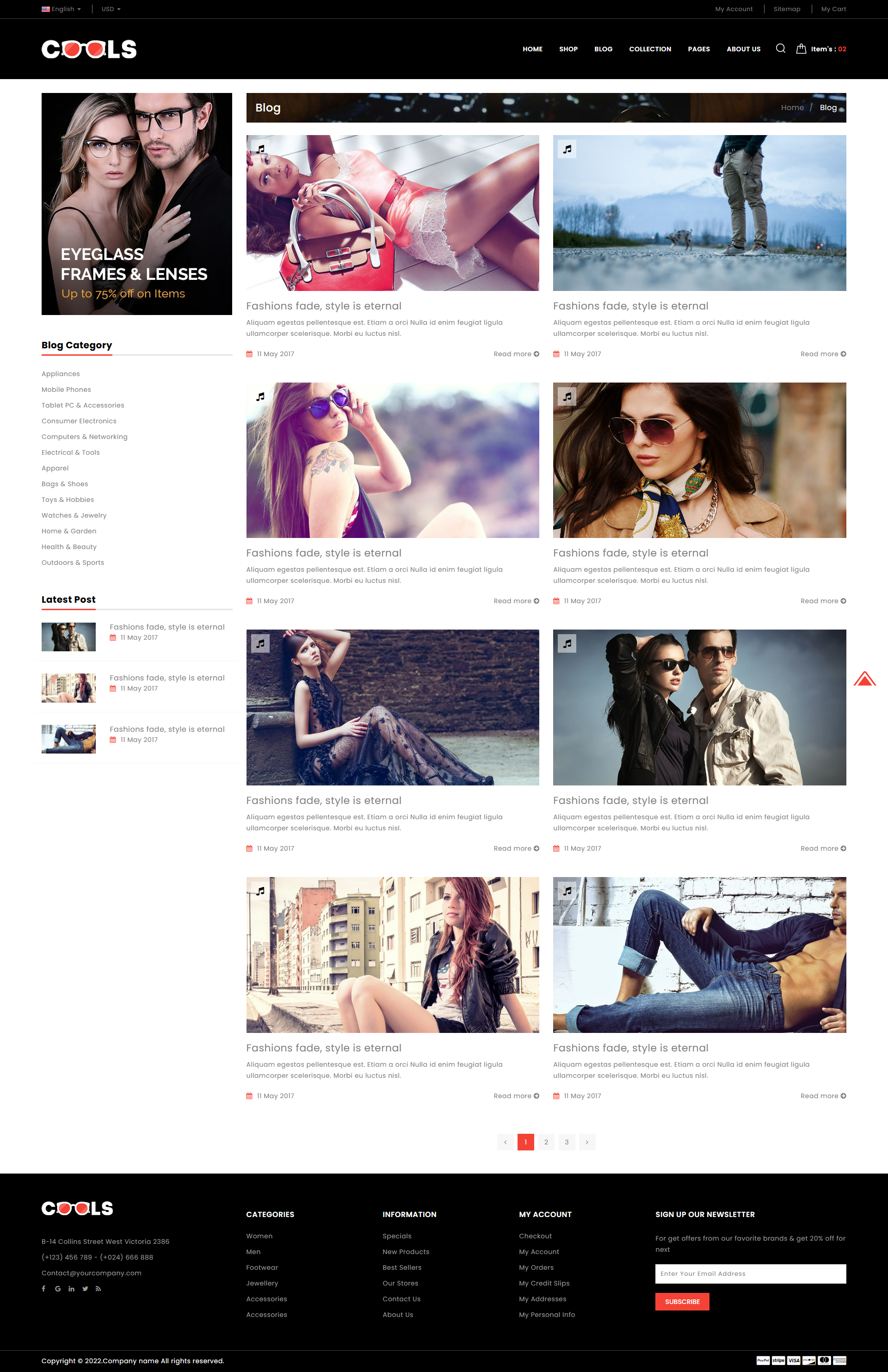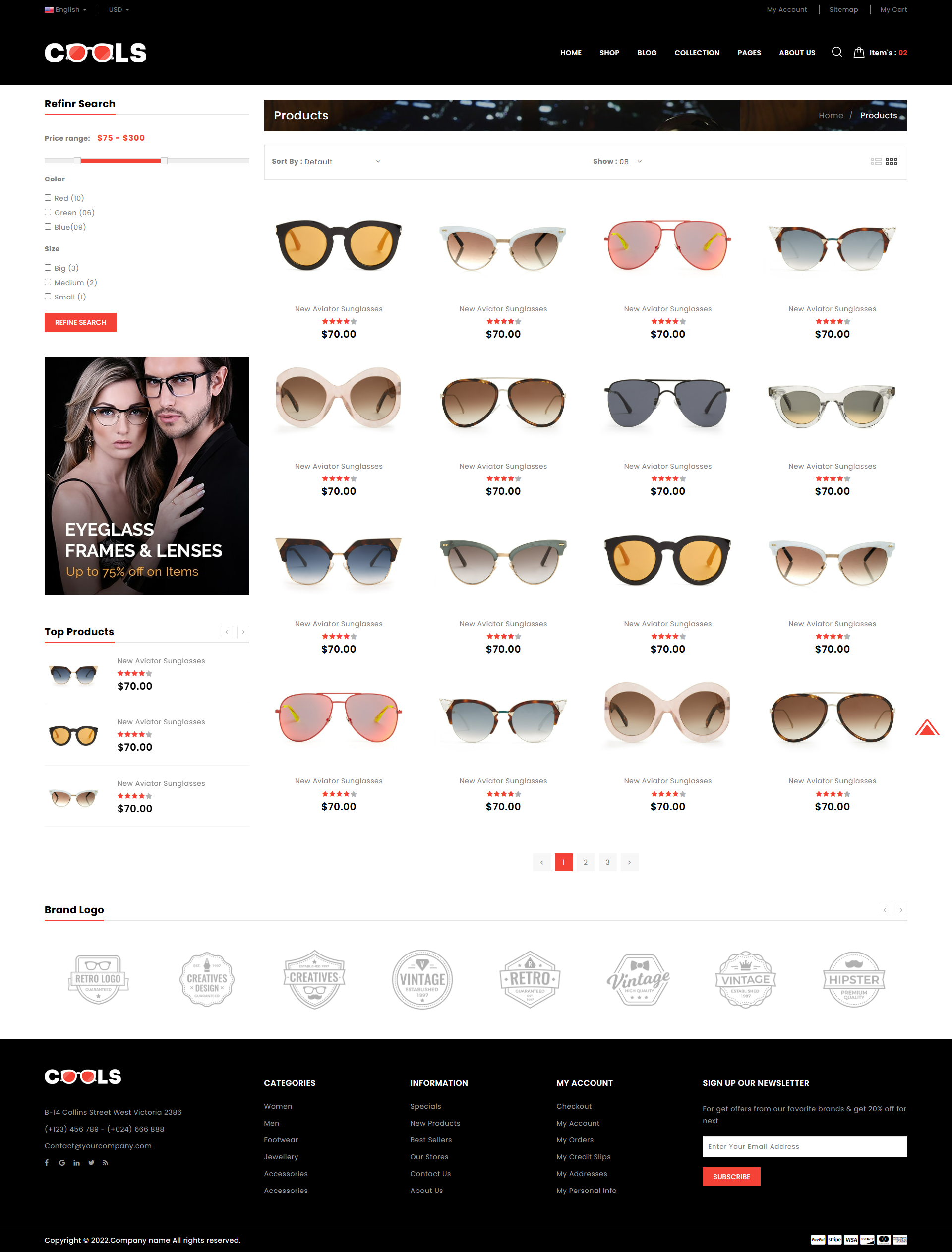Cools - Sunglasses & Eyewear E-Commerce HTML Template
